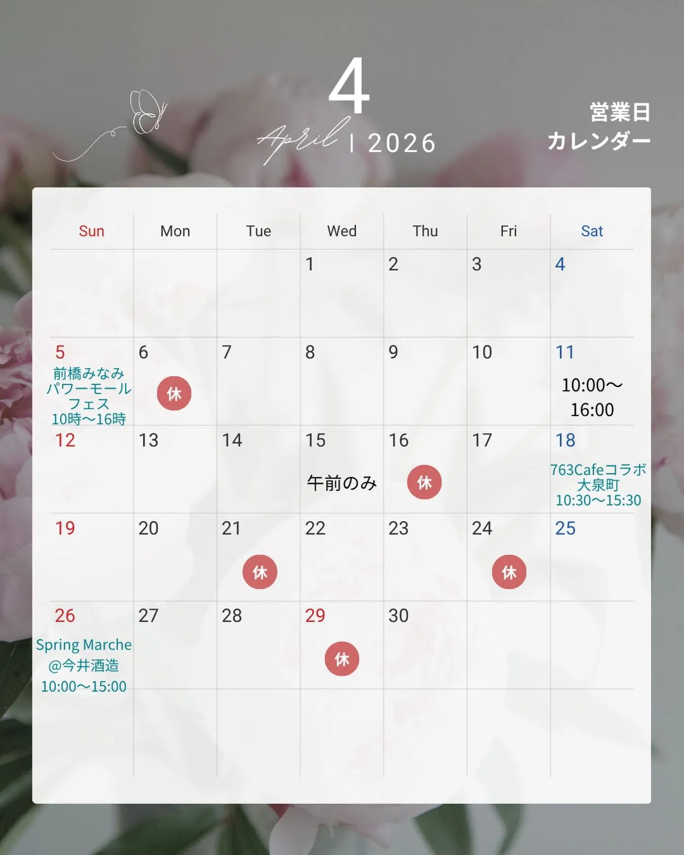 今月の営業日とイベント出店のお知らせ✨
